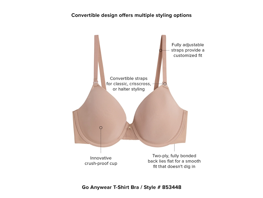 Crafted with unique crush-proof foam cups, this space-saving bra folds into the tightest areas of your suitcase and pops back into shape as soon as you unpack. The convertible design offers multiple styling options to fit any outfit.