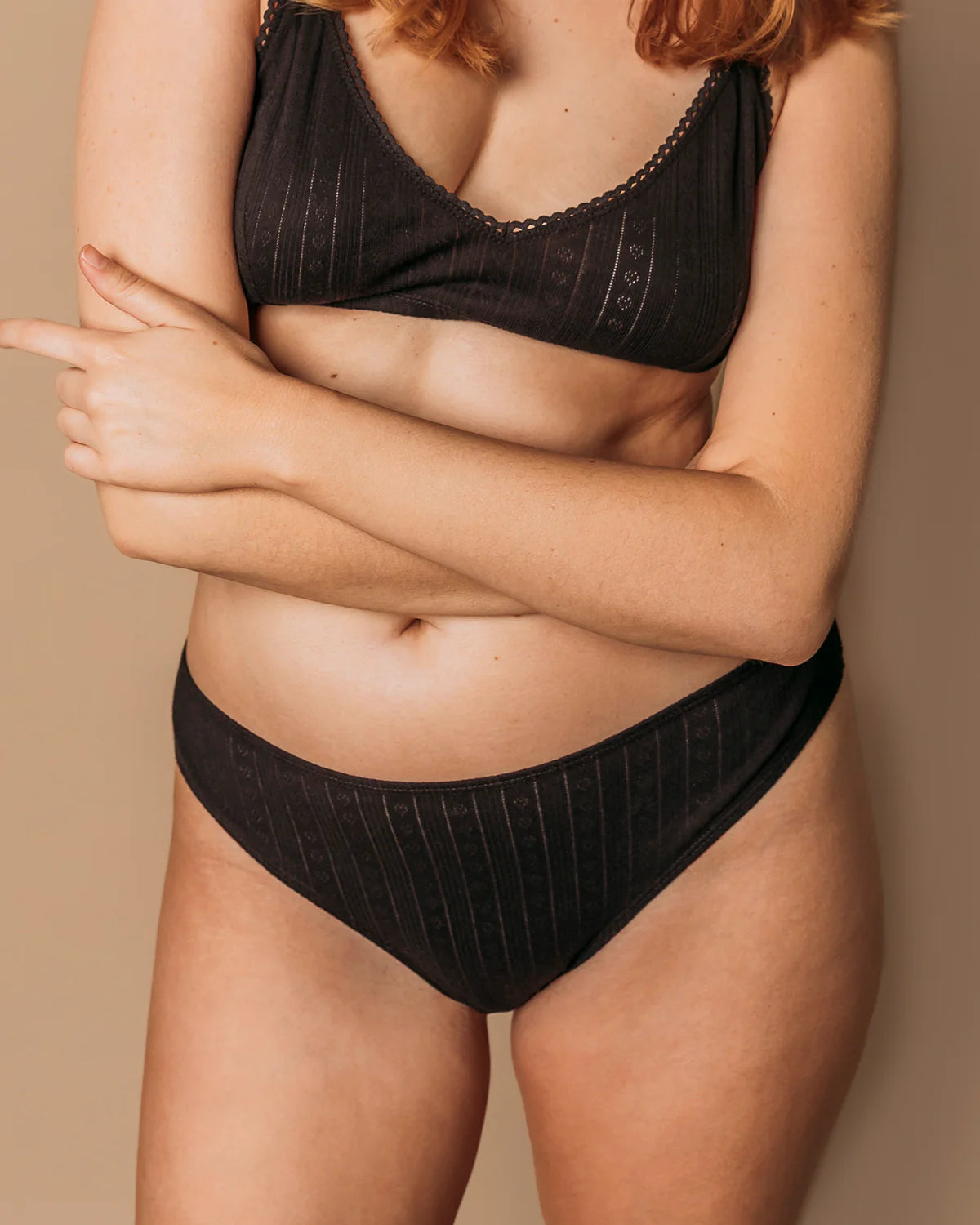 A mid-waist thong with minimal back coverage. Crafted in soft, 100% certified organic cotton pointelle.
